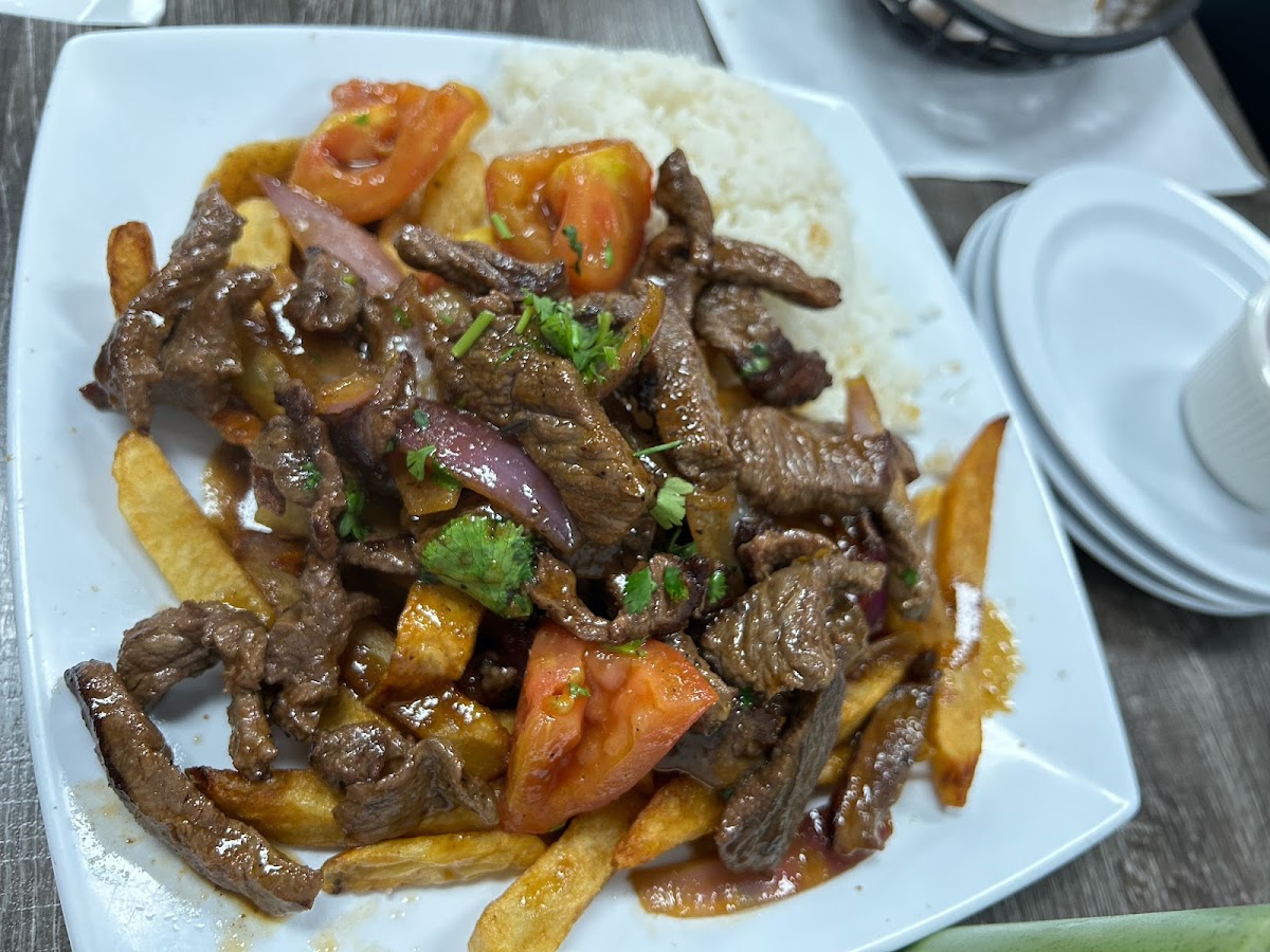 Lomo Saltado with Rice and Fries